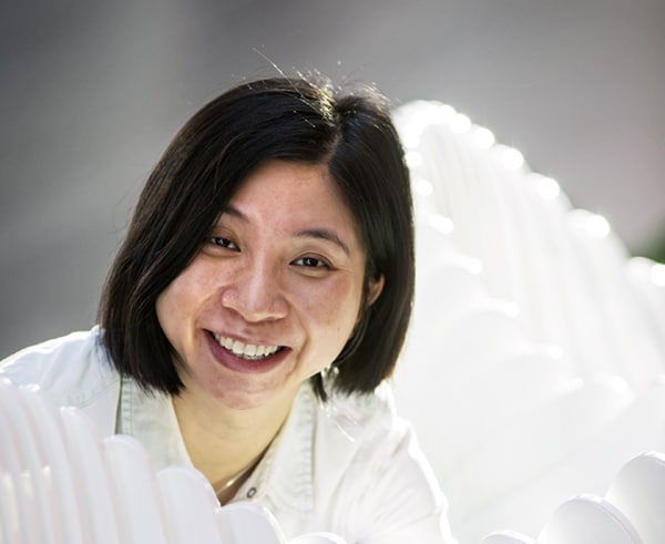 I porten till Institutionen för vatten och miljö möter Pianpian Wu. Det är söndag och nästan tomt i lokalerna men Pianpian och hennes lika ambitiösa doktorandkompisar jobbar på.