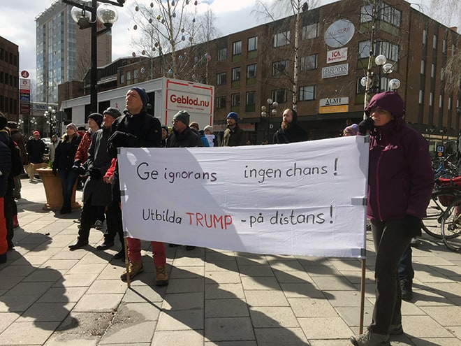 Hon citerar Erland Mårald, professor i idéhistoria vid Umeå universitet som talade under manifestationen.