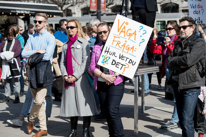 Vid manifestationen för vetenskap i Stockholm samlades kanske 200–300 personer på Norrmalms torg.