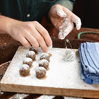 Till julbordet utvecklar Magnus Westling en gråärtsbulle (som en köttbulle utan kött) och en gråärtsboll (som en chokladboll utan choklad).